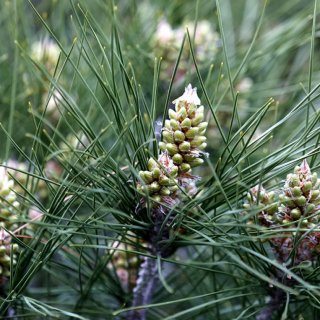 Листья растения игловидные, часто и плотно прижаты к веткам. С возрастом каждый из них прирастает к ветви на две трети так, что выступает только кончик.Начиная со второго года жизни кипариса, на нём созревают маленькие шишки мужского и женского пола. Их диаметр составляет около 1-1,5 см.