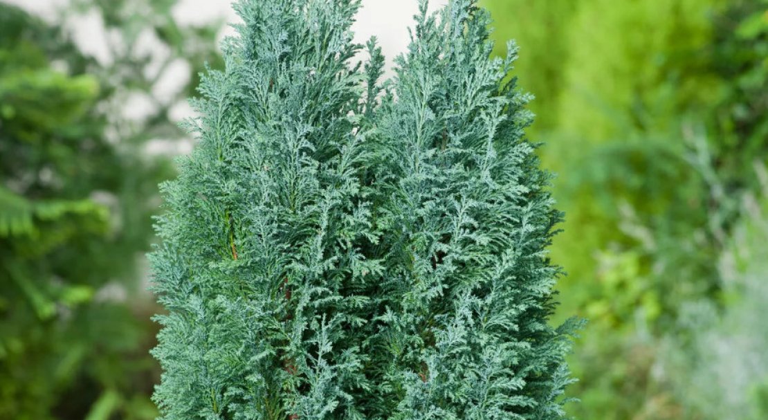 - хвоя — чешуйчаста, коротка, жорстка, забарвлена в жовтий, ізумрудний з синім відливом або кремового кольору, в залежності від сорту;