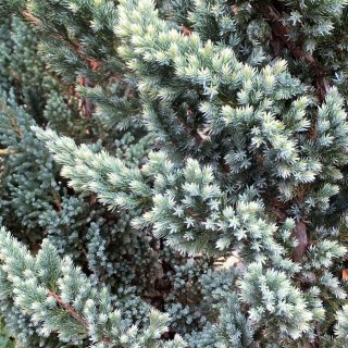 Можжевельник Блю Карпет относится к двудомным растениям. Это значит, что он обладает женскими и мужскими кустами. Определить разницу можно по кроне. Женский вариант растения обладает распростёртыми кустами и рыхлой хвоей, мужской — яйцевидными и узкими кустами.