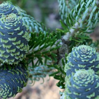 Після досягнення стиглості вони стають коричневими і покриваються смолянистими скопищами, після чого розпадаються прямо на дереві, звільняючи насіння, що містяться всередині під лусочками. Хоча корейська пихта красива навіть у природному, природному стані, у неї багато незвичайних і привабливих для садового вирощування сортів, серед яких можна знайти високорослі та карликові види, які ростуть у вигляді дерева або куща, та досягають розмірів від 60–100 см.