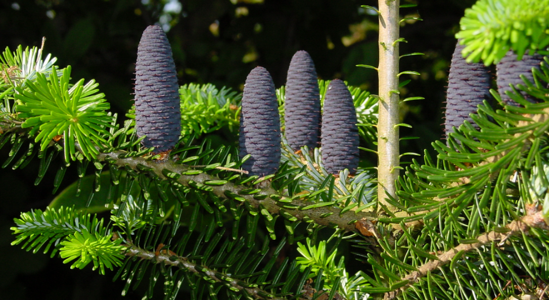 Крім красивих шпилок та пагонів, чіткої і правильної форми крони, головним прикрасою дерева є насінні шишки. Вони з'являються на рослині після декількох років вирощування (навіть на 1-1,5-метрових зразках) і вирушаються на самому кінці гілок. Шишки досить товсті, циліндричні і не дуже довгі, а до дозрівання мають незвичайний сине-фіолетовий колір.