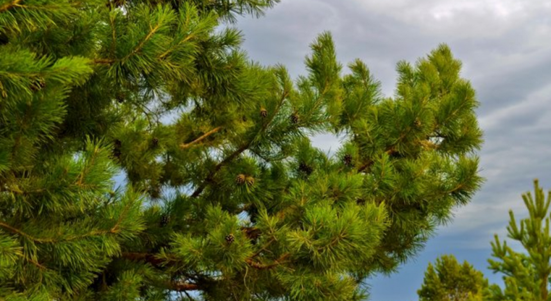 У молодого дерева крона формується у вигляді конуса. З роками стає ширше, і більш круглою. А до старості виглядає плоскою або зонтиковидною. Хвоя має хорошу щільність, зазвичай хвоїнки збираються в пучки, по кілька штук. Пофарбовані в сіро-зелений колір. Досягають 4-7-сантиметрової довжини.