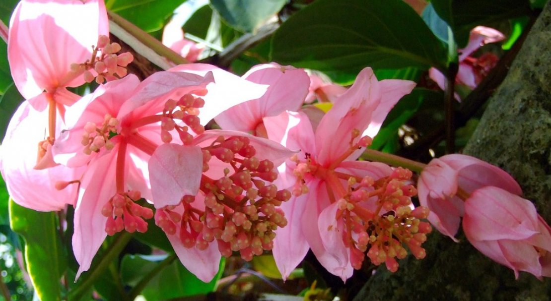 - Мединилла Куминга. Батьківщина — Філіппіни, росте у вигляді невеликого куща і має великі, злегка увігнуті листя з блиском. Час цвітіння — весна, гроновидні суцвіття, рожевого кольору.