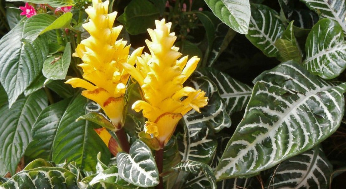 Цвіте ця рослина з середини липня по жовтень. В цей час на верхівці куща з'являються витончені колосовидні суцвіття довжиною до 15 див Приквіткові листки найчастіше великі, чотирикутної форми, віночок двогубий, оранжево-жовтий. Квітки в суцвіттях насиченого жовтого кольору, з'являються вони по черзі, після чого протягом кількох днів відмирають. Завдяки цьому цвітіння не припиняється впродовж декількох місяців. Після цвітіння на кущі дозрівають численні темно-коричневі, майже чорні насіння.Умови для вирощування вдома