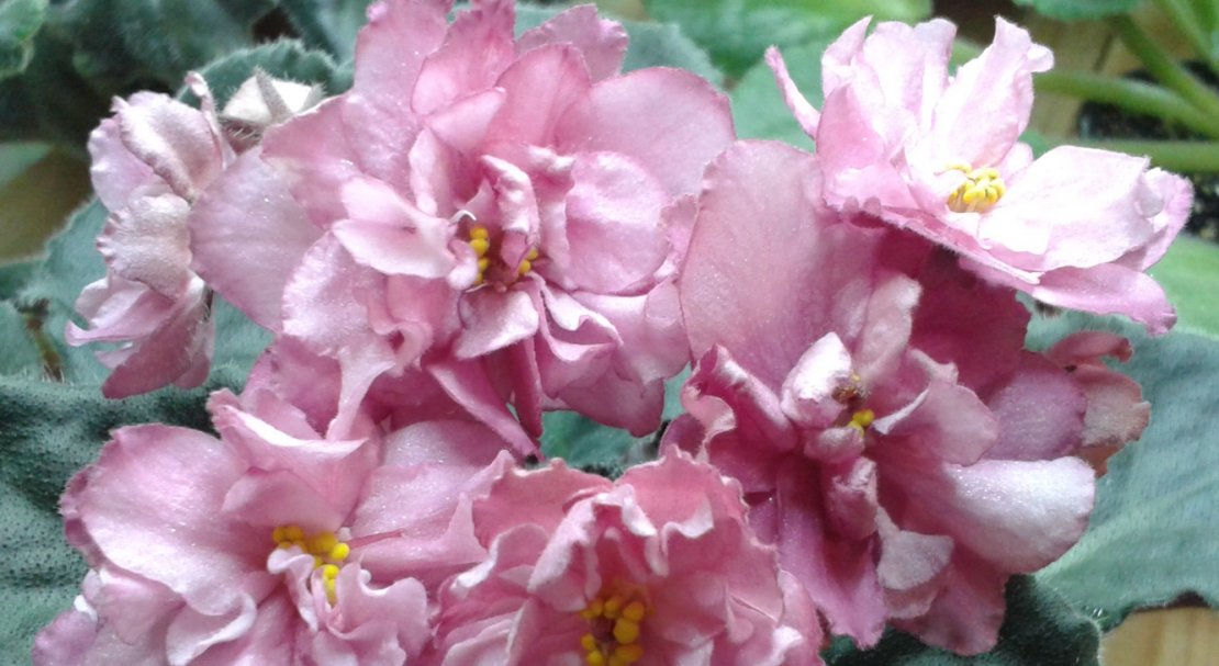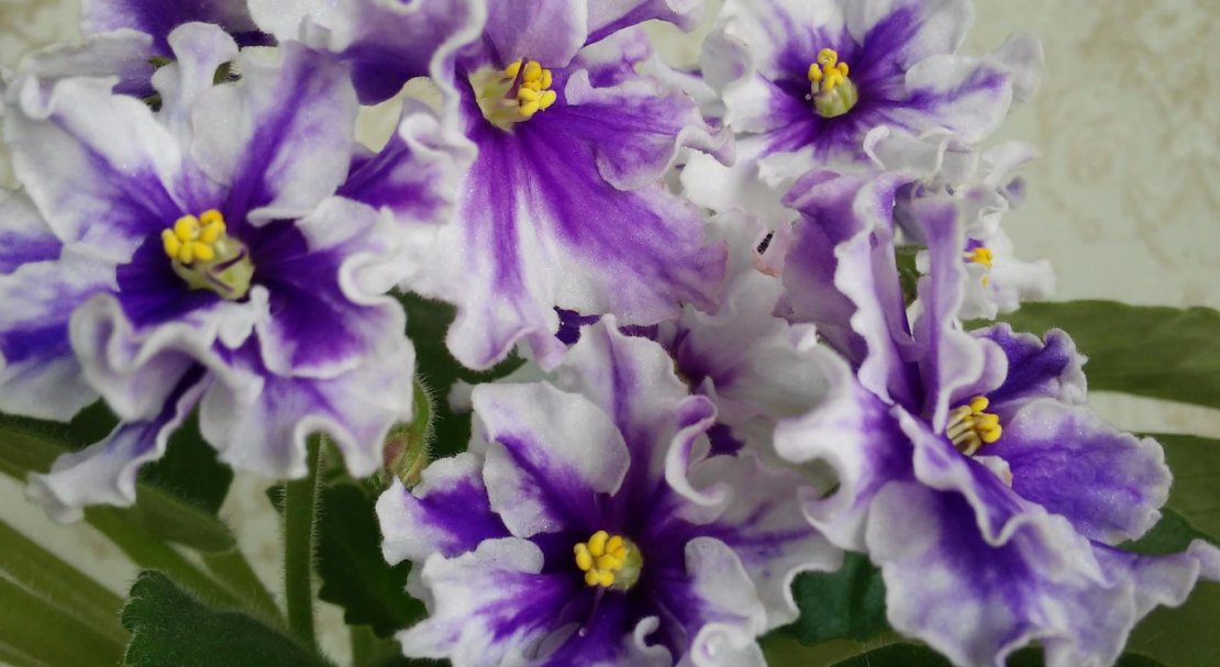 - «Паша» — листя округлої форми з чіткими прожилками, яскраво-зеленого кольору. Цвіте часто і рясно великими до 6 см в діаметрі махровими суцвіттями. Махрові пелюстки блідо-блакитного або блідо-рожевого кольору, відмінна риса — фіолетовий крап на основному тлі;