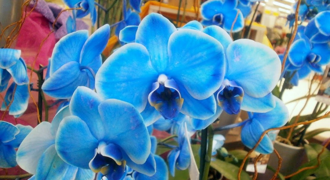 Блакитні орхідеї або фаленопсиси (як називають найбільш зустрічається вид) — це звичайні орхідеї, в які шляхом ін'єкцій введений спеціальний барвник або які просто пофарбовані методом поливу.