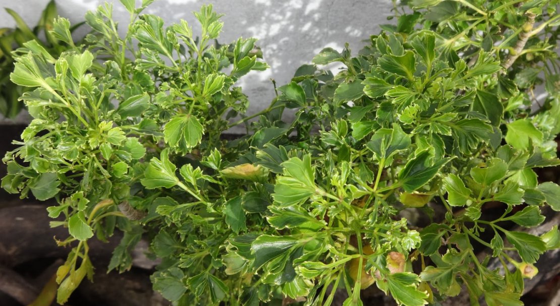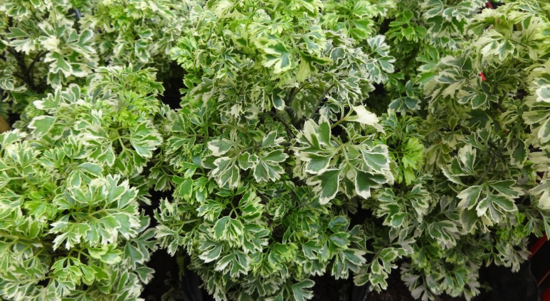 - Кучерявий. Невеликий, повністю облиствений кущ. Перисто-розсічені листя пофарбовані в насичений зелений колір, мають іноді жовтуваті плями або вузьку світлу обідок.