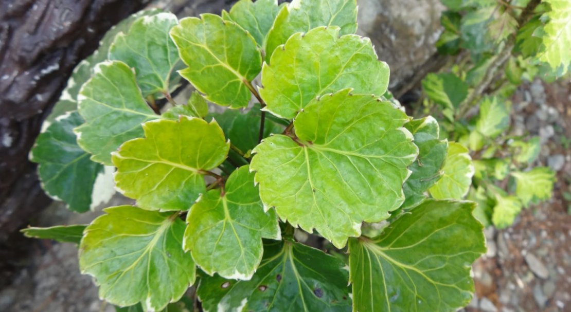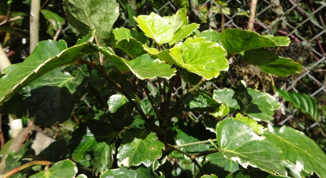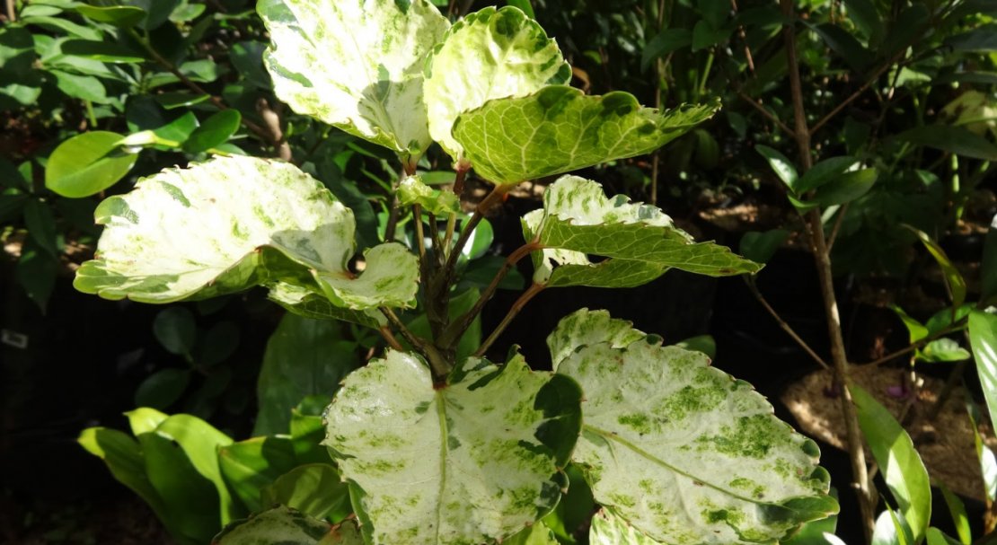 - Шоломоносний. Виділяється серед інших видів свого роду наявністю товстого стовбура та тонких гілок. Крона добре розвинена і облиствена листям з білою окантовкою. Молоді листки мають округлу форму, а з плином часу вони стають трилопатевими.