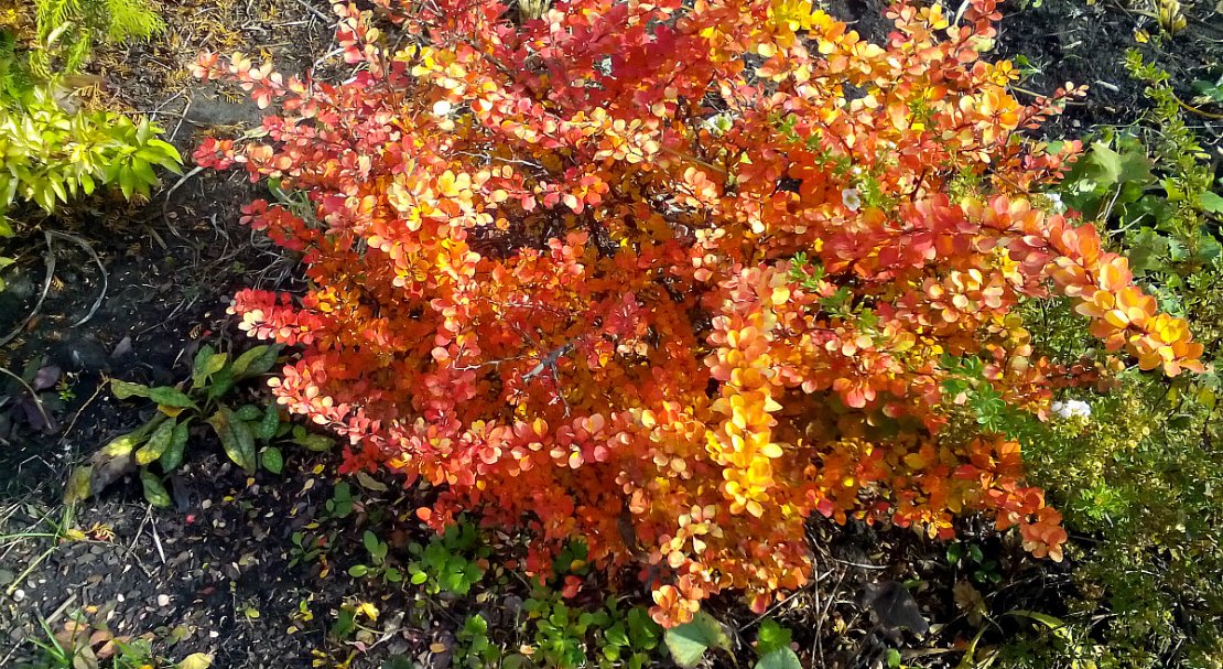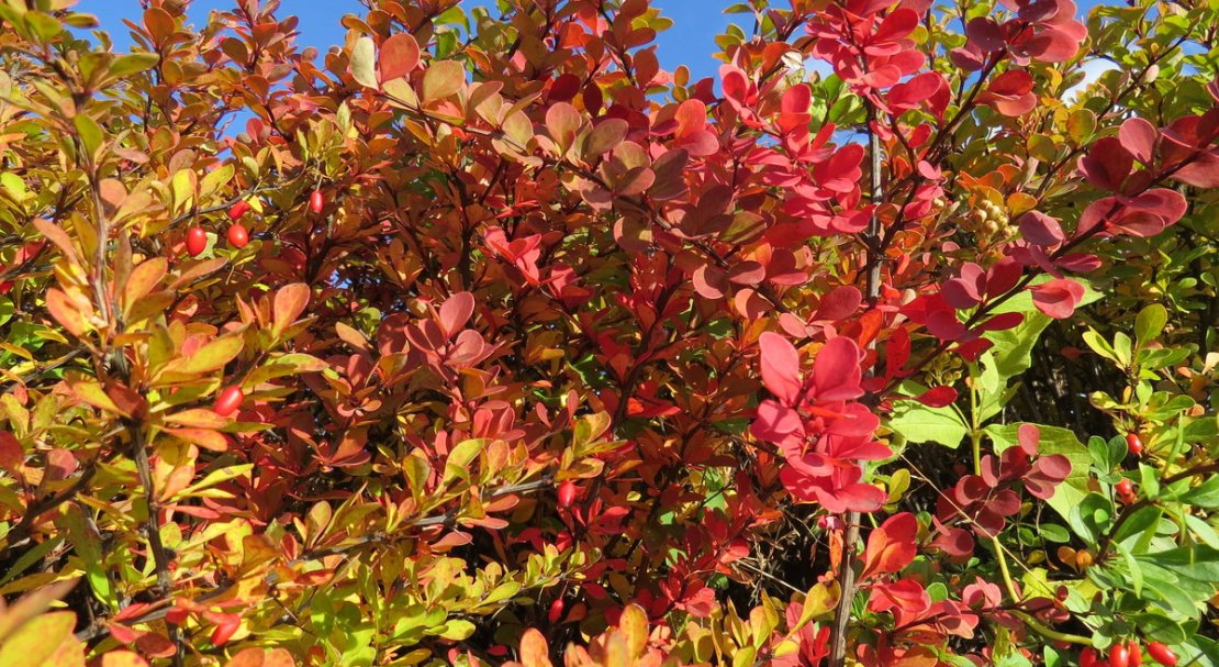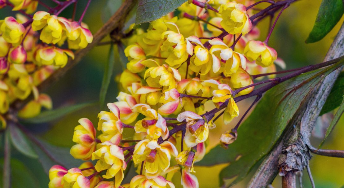 - Барбарис. Цвіте жовтими квітами в квітні і травні. Плодоносить їстівними ягодами.
