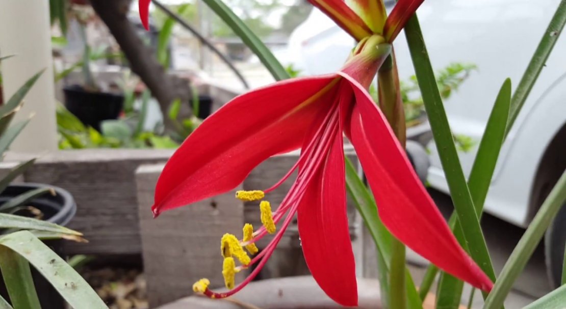 Колір листя може бути від зеленого до сизого. Сам високий квітконіс, до 50 см, і порожній усередині. На кінці розташовується червоний квітка з 6 пелюстками, 3 з яких закручені вниз, а 3 дивляться вгору. Зовні квітки нагадують орхідеї, а також виділяють приємний ванільний аромат. Від моменту появи квітконосу до розкриття квітки проходить 20 днів. Зацвітає рослина в період з квітня по червень, однак саме цвітіння можна спостерігати всього кілька днів — через 5-6 днів від краси не залишиться і сліду.