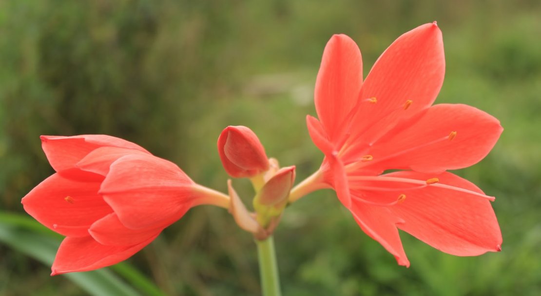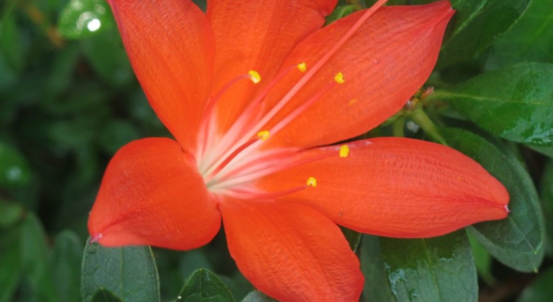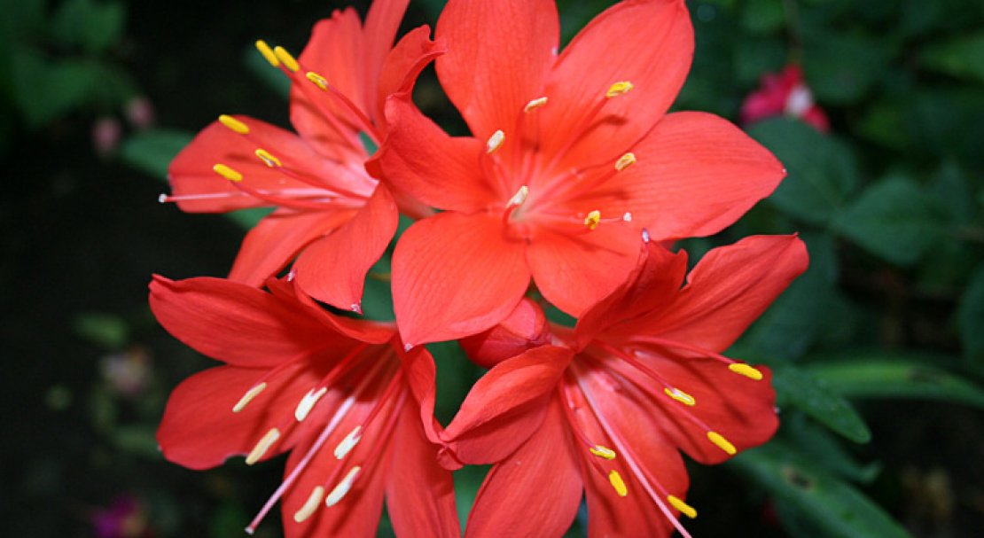 | Квіти | Прямостоячі, форми дзвіночка з 6 загостреними на кінцях пелюстками. Діаметр — близько 5 см, розміри пелюсток, до 5 см завдовжки і 2,5 см завширшки. Довжина тичинок — до 2,5 див. Пелюстки яскраво-червоні, білі або малинові. |