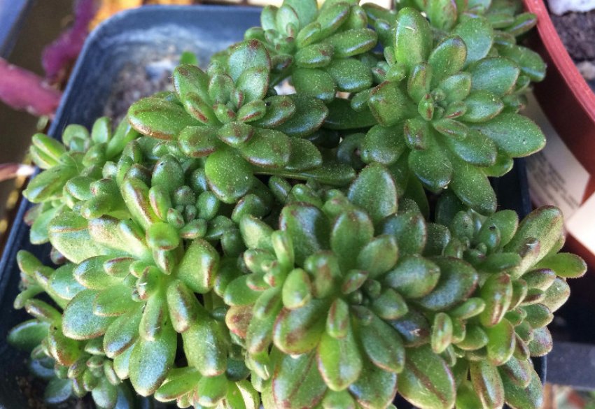 - Точковий. Формує компактний кущ з білою опушкою не тільки на листі, але і на стеблах. Його коричнево-зелені гілки на самому верху закінчуються «трояндочками» з листя.