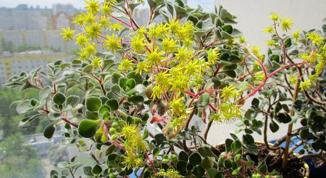 Гілки і листя крихкі; листя схожа на плюш. Рослина, яка виглядає як мініатюрне деревце заввишки до 40 см, викликало інтерес у квіткарів, і деякі його види стали вирощуватися в кімнатних умовах. Цвіте воно зазвичай невеликими жовтими квітками.