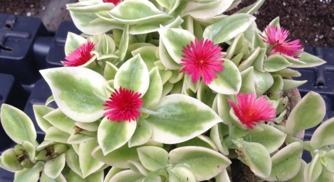 Цвіте сукулент яскравими невеликими (до 1,5 см в діаметрі) квітками, поодиноко розташовані в пазухах листків на верхівках стебел. Цвітіння насичене і тривале – з весни до середини осені. Квітки плоско, що складаються з безлічі голчастих пелюсток червоного, пурпурного, рожево-лілового, рідше білого забарвлення. Розкриваються бутони в середині дня. Після відцвітання на їх місці утворюється плід, який представляє собою капсулу з декількома камерами, в кожній з яких знаходиться 1 досить велике темно-коричневе насіннячко з шорсткою оболонкою.