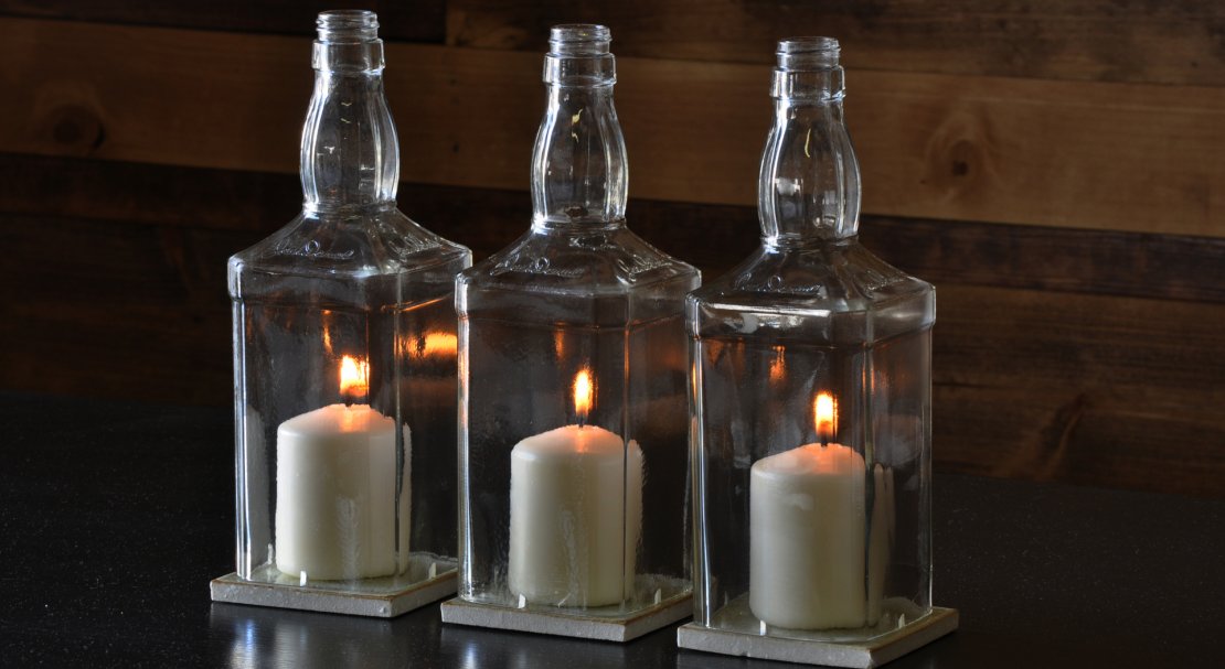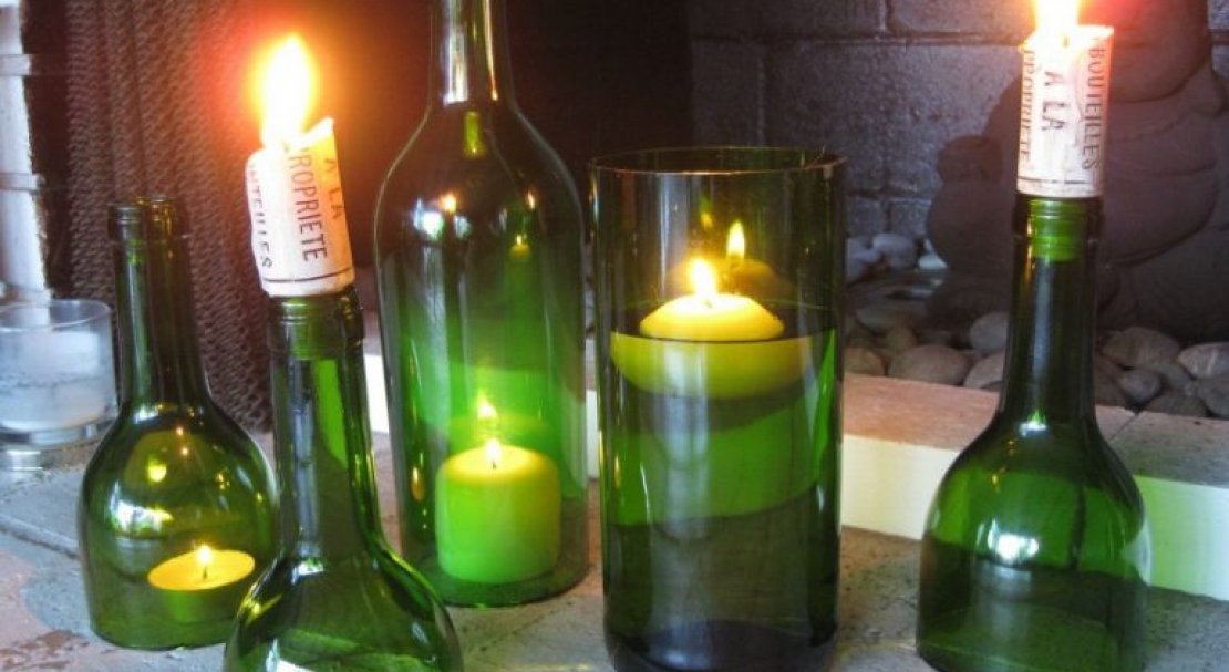 При цьому можна встановлювати свічки в горловину пляшки, можна накривати їх перевернутими пляшками з відрізаним дном, а можна зробити свічку з пляшки: на дно розрізаної посуди покласти горелку і залити розтопленим парафіном.