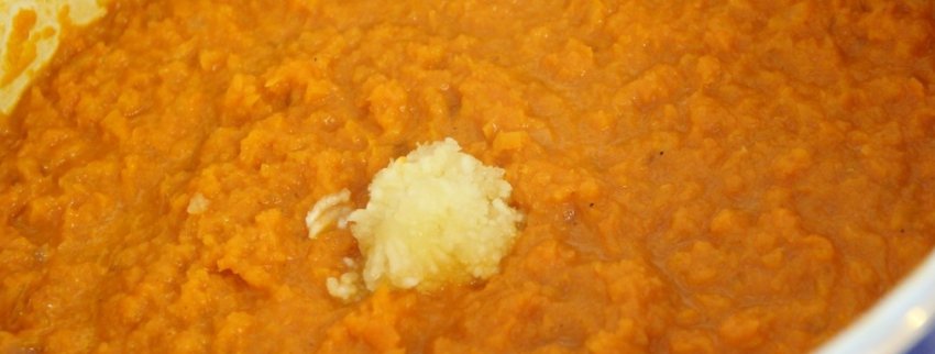 - Покласти в пюре подрібнений часник і влити лимонний сік. Тушкувати ще 5 хвилин.