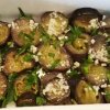 - Наріжте попередньо підготовлені баклажани півкільцями і додати до інших овочів.