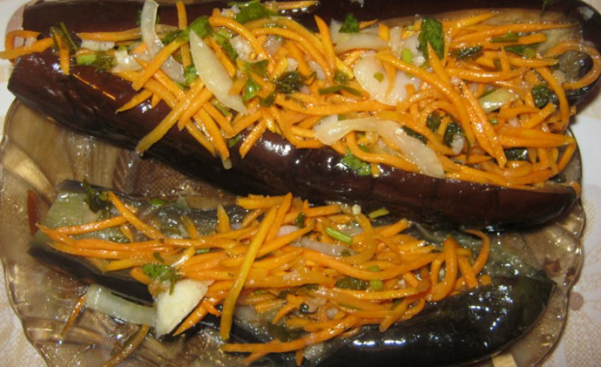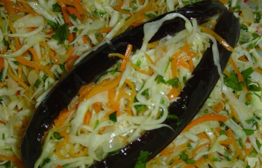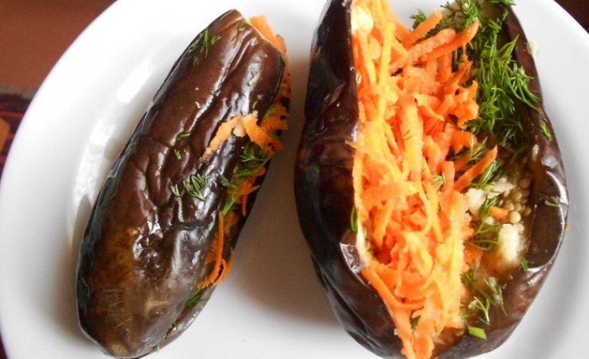 - Розріжте охолоджені баклажани уздовж, отдавите з них рідину, а потім сумішшю нафаршируйте з капусти, моркви і часнику.