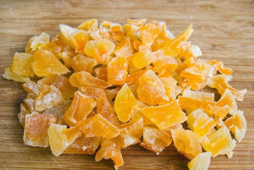 - Далі цукати необхідно просушити. Дана процедура можлива декількома способами: на відкритому повітрі, в духовці і в сушарці. Можна просто розкласти на тарілці і виставити її на двоє діб на відкрите повітря. Можна також скористатися духовкою, виклавши шматочки плода на деко, і сушити при температурі не більше +70°С (обов'язково з відчиненими дверцятами!) протягом 1-1,5 годин. Останній, але не менш ефективний варіант — електросушарка. Для сушіння цим способом розкладіть кубики на піддони і сушіть при температурі +50...+55°С 1 годину.