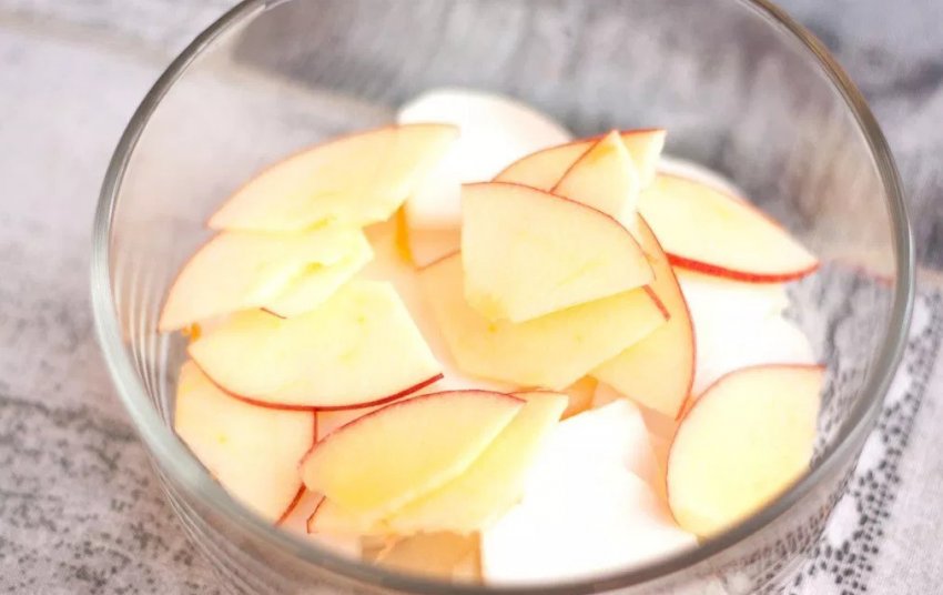 - До імбиру додати нарізані пелюстками яблука, залити все маринадом.