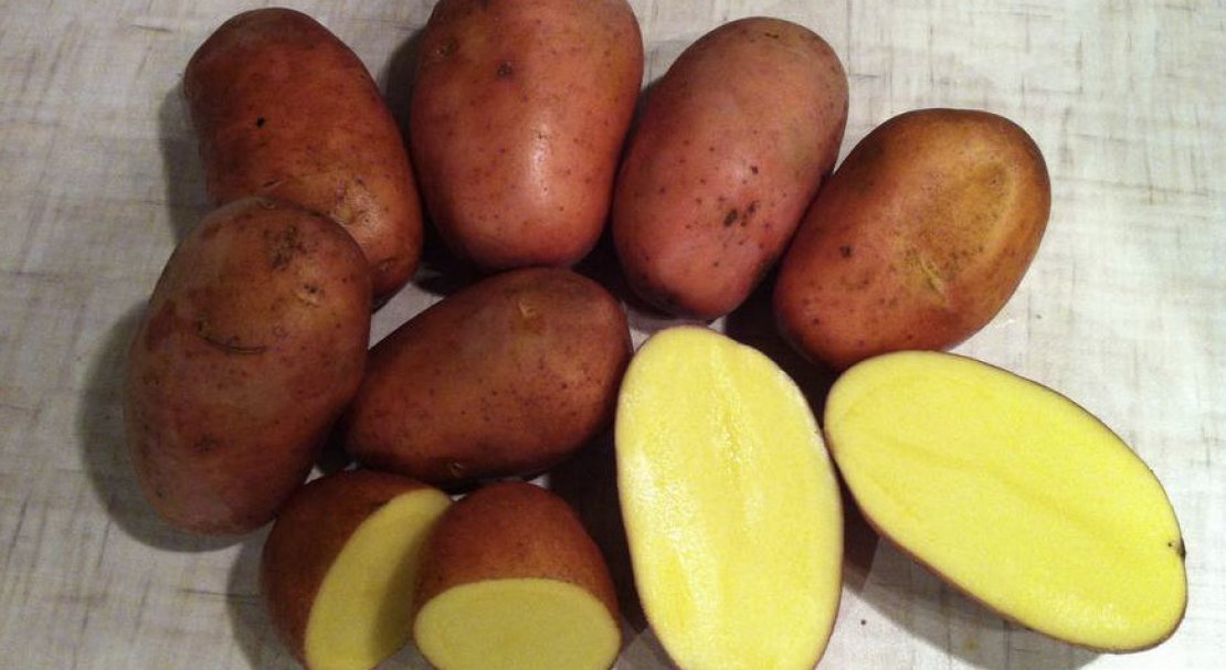 Сорт показує стабільно високу врожайність — до 45 т з 1 га На одному кущі здатне зав'язатися від 7 до 9 бульб видовженої форми, масою по 200-500 р. У них рожева шкірка і м'якоть жовта. Вміст крохмалю на середньому рівні — 13-15%. Очки поверхневі, а це значить, що бульби легше мити, очистити і розрізати.