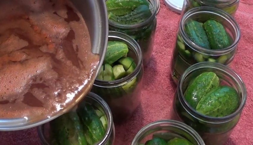 - Залити огірки знятим з вогню гарячим маринадом, закрутити простерилизованными кришками.