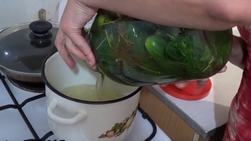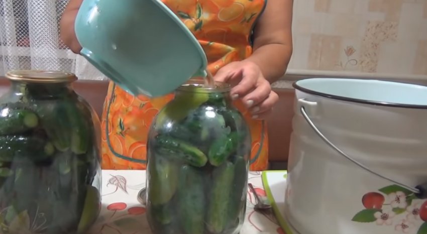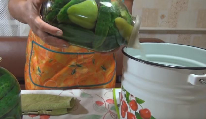 - З банок зливають воду в окрему каструлю через 15 хвилин, повторно доводять її до кипіння.