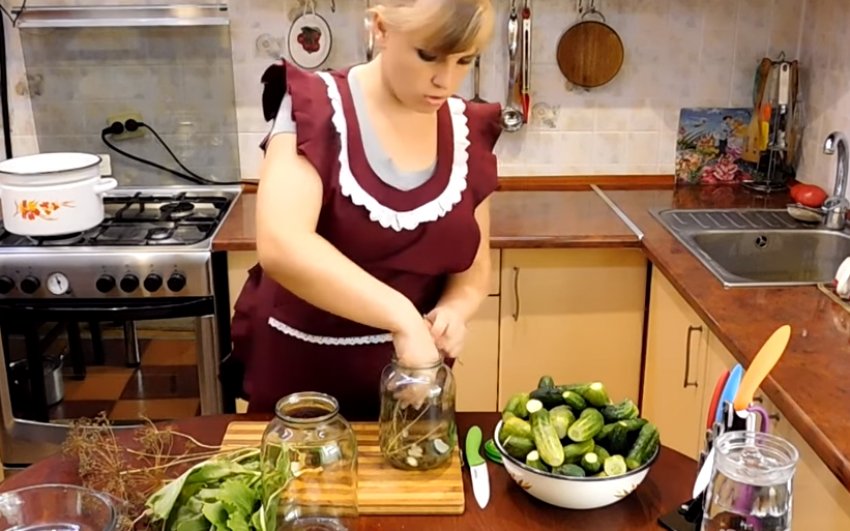 - Вкладання в банку зеленцов.