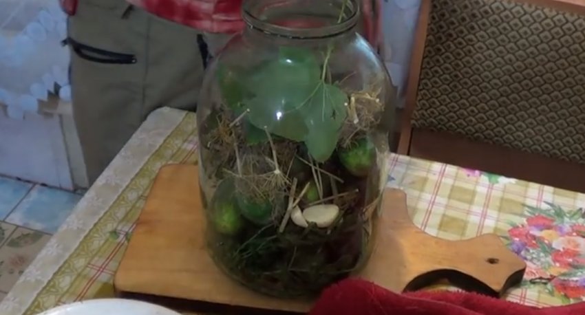 На спеції викладають зеленці, які рекомендовано перекласти листям хрону (2-3 шт.).![]()