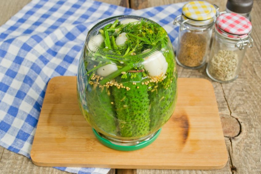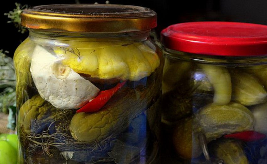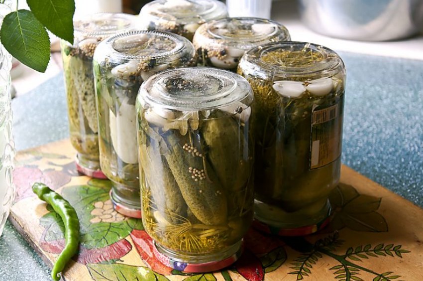 - Вберегти огіркові консервації від вибухів і вздуваний кришок допоможе щіпка гірчиці, якій потрібно посипати верхній шар плодів перед закачуванням.
