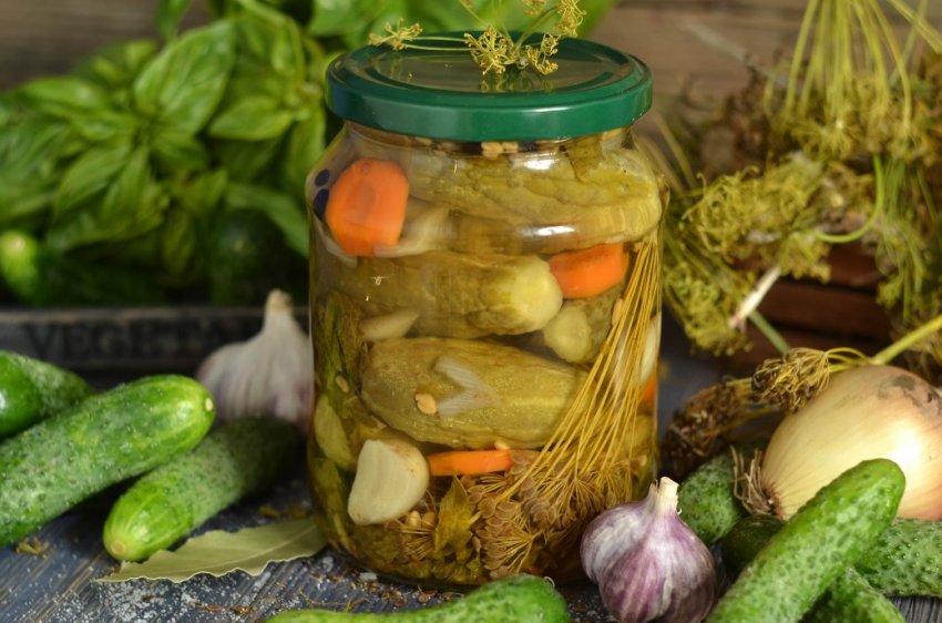 - В банку з огірками можна помістити і інші овочі, наприклад, цвітну капусту, моркву, цибулю, патисони, кабачок — це різноманітить смак заготовок. Вживати таке овочеве асорті можна і як окрему страву, і в складі різних зимових салатів.