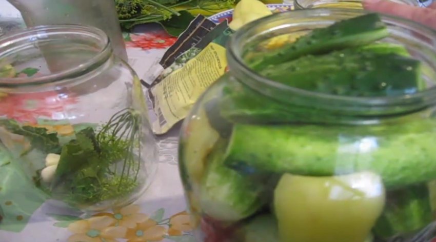 Заповнити банку до верху огірками.![]()