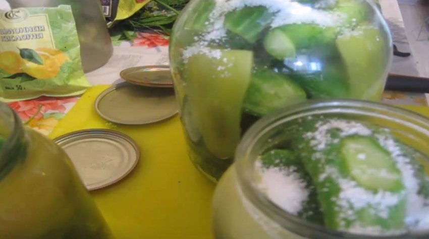 У банки засипати лимонну кислоту з розрахунку 1/2 ч. л на кожну банку.![]()