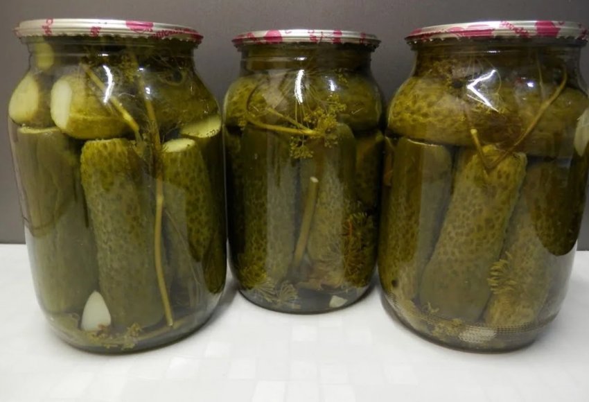 - Після закрутки бутлі перевертають і, обгорнувши, залишають по поступового повного остигання. Зберігати такі огірки бажано в прохолодному приміщенні.