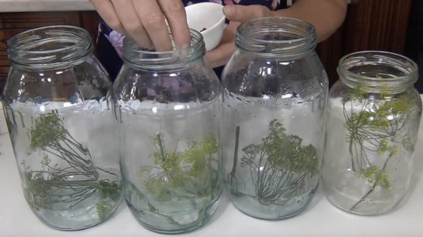 На дно в підготовлені банки покладіть зелень, порізані на пластинки зубки часнику, гвоздику, естрагон, перець.![]()