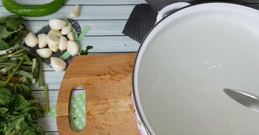 - Окремо в каструлю, залийте воду і розмішайте в ній сіль, не нагріваючи рідину.