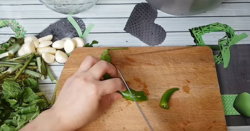 Подрібніть гострий перець на сантиметрові шматки.![]()