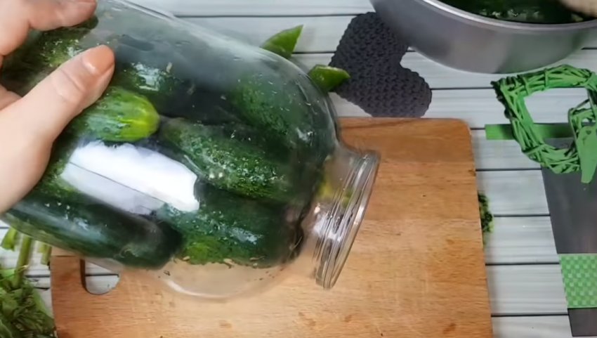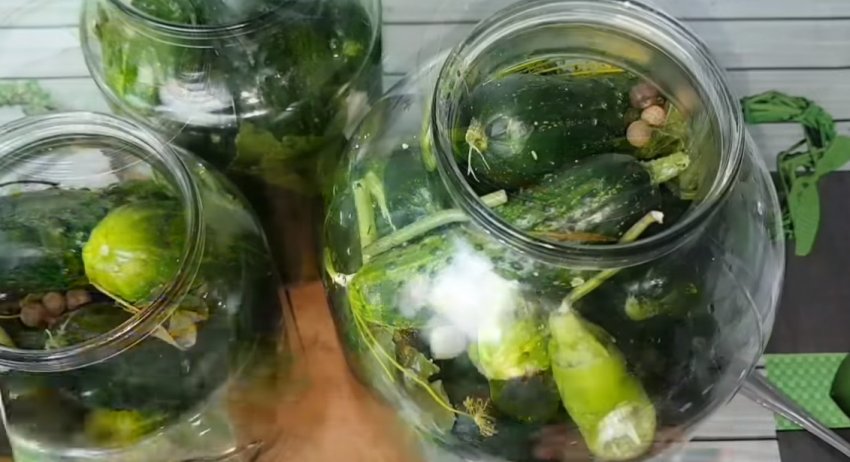 Огірки для заквашування краще вибирати середнього розміру. Плоди повинні бути рівними і не мати пошкоджень на шкірці у вигляді гнилі або нальоту. Відібрані екземпляри слід промити і замочити на 4-6 годин у холодній воді. Додатково можна відрізати кінці з обох сторін.