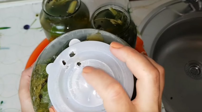 - Тару для консервації помістіть в миску, куди буде стікати розсіл, і залиште в темному місці на 2 діб.