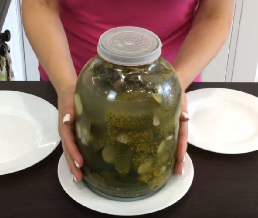 - Стежте, щоб рівень розсолу завжди на 3-4 см вище був корнішонів.
