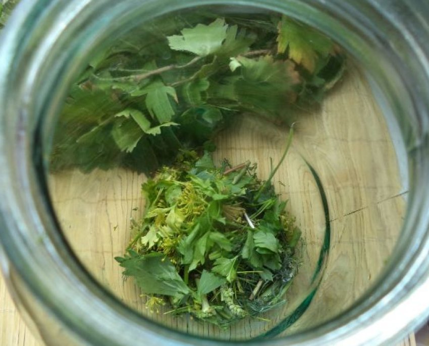 - листя хрону, чорної смородини, малини, вишні, дуба