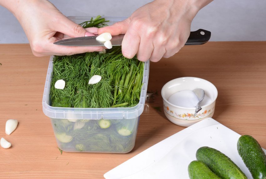 Багато хто стверджує про корисність таких малосольних огірків, але дієтологи радять утриматися від подібних продуктових поєднань. Якщо все ж ви хочете спробувати щось пікантне, зберіть необхідний набір овочів, зелені та прянощів.