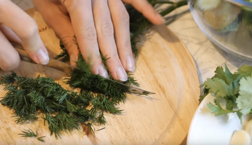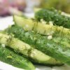 Для приготування цієї закуски знадобляться огірки з горбкуватою структурою, щільні, свіжі. Продукцію перед використанням потрібно замочити: