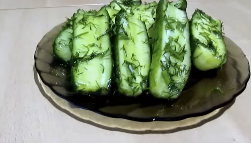 Через 2-3 години можете подавати закуску до столу, огірочки будуть свежепросольные.![]()