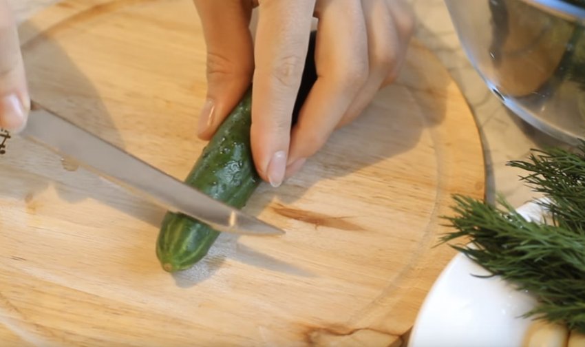 Відріжте кінчики огірків приблизно по 2 див.![]()