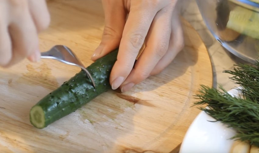 Не різані огірки проколіть по всій довжині виделкою.![]()