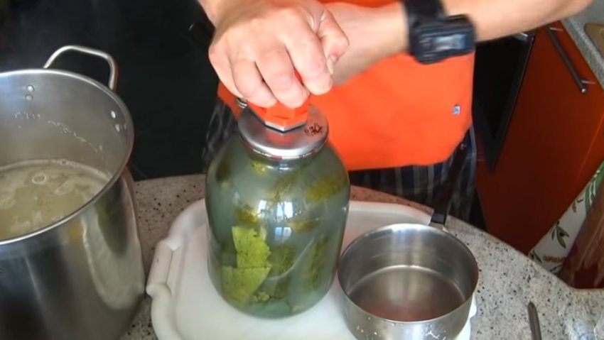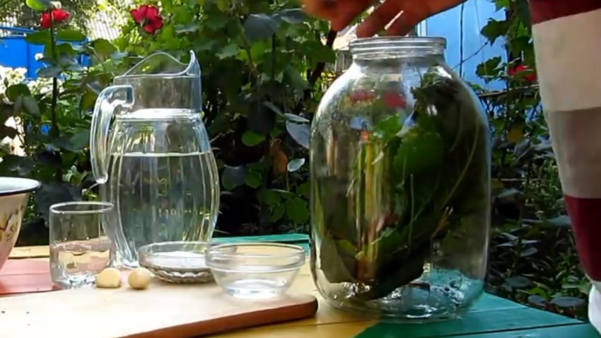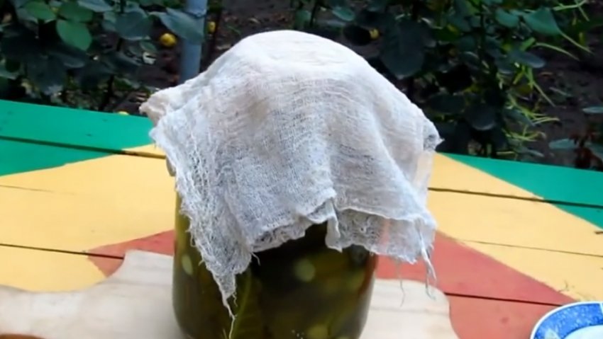 Покласти на шийку банок марлеву серветку і відставити соління на 12 годин, періодично видаляючи з'явилася піну.![]()
