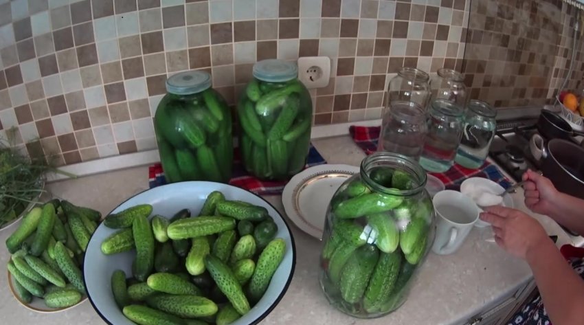 Зрозуміло, перед початком приготування потрібно подбати про чистоті й належному вигляді всіх складових: наприклад, огірків можна відрізати хвостики, а часник або нарізати часточками, або закласти в банку цілими частинами.