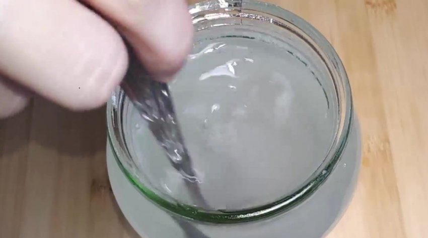 Наповнивши доверху банку, наберіть півчашки води і розчиніть в ній неповних 3 ложки солі.![]()