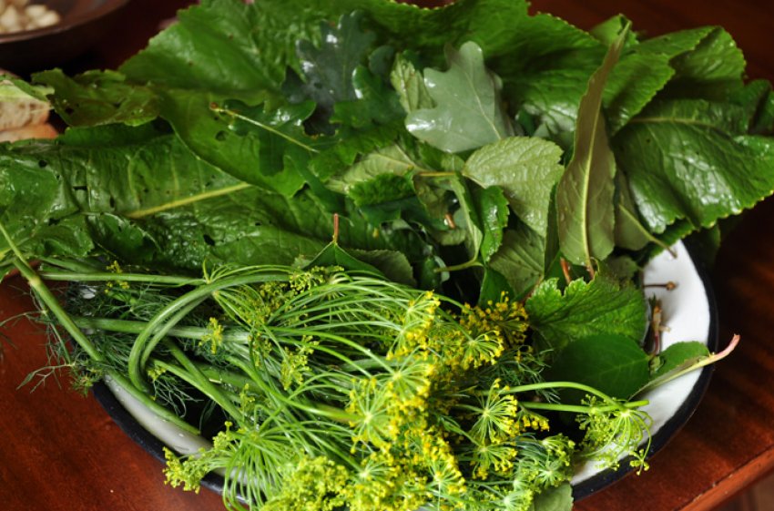 Помийте зеленці і залиште їх у холодній воді на 2 години. Вимийте кріп і всі підготовлені листя. Можна додатково просушити їх.![]()